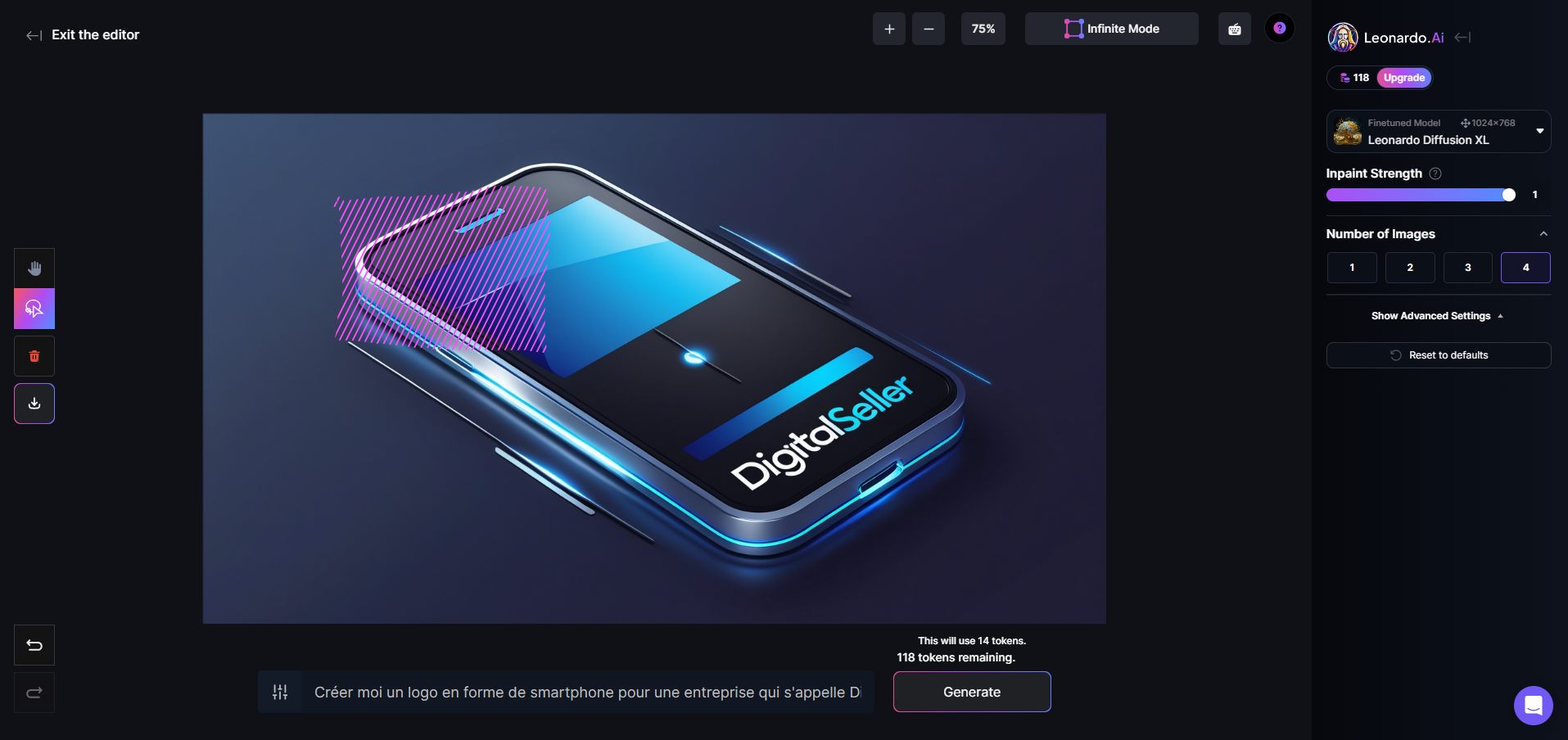 « Crée-moi un logo en forme de téléphone pour une entreprise qui s’appelle Digital Seller. »